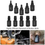 Das 10-teilige Schraubenausdreher-Set bietet eine umfassende Auswahl an Größen, sodass du für jede Ausdrehaufgabe das passende Werkzeug hast.