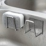 Zwei Haken zum Aufhängen oder Befestigen von Schwämmen, Tüchern und anderen Haushaltsutensilien.