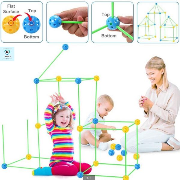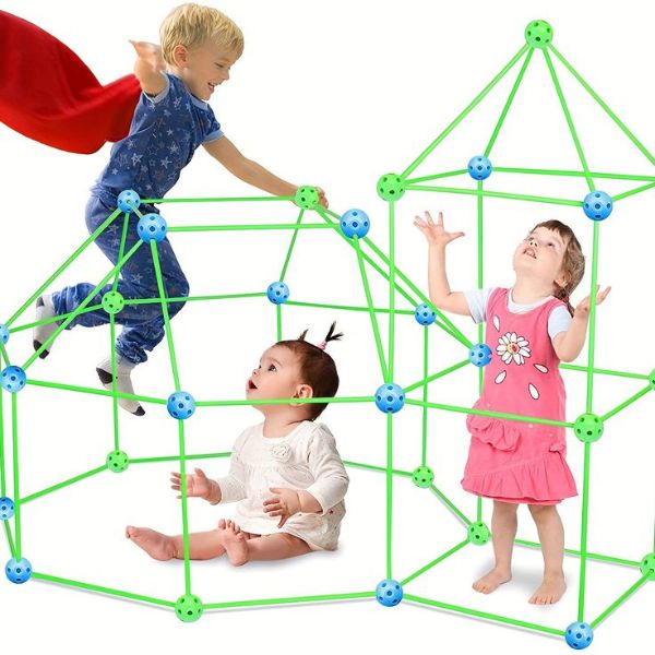 Fördern Sie die Kreativität Ihrer Kinder mit dem FORTKID-Baukasten! Errichten Sie eine magische Festung, in der Ihre Kleinen erforschen, spielen und träumen können. Mit 87 Teilen aus strapazierfähigen Kunststoffstäben und Gelenken können sie endlose Strukturen ihrer Wunschschlösser erschaffen oder eine große Festung bauen und wie echte Könige und Königinnen herrschen!