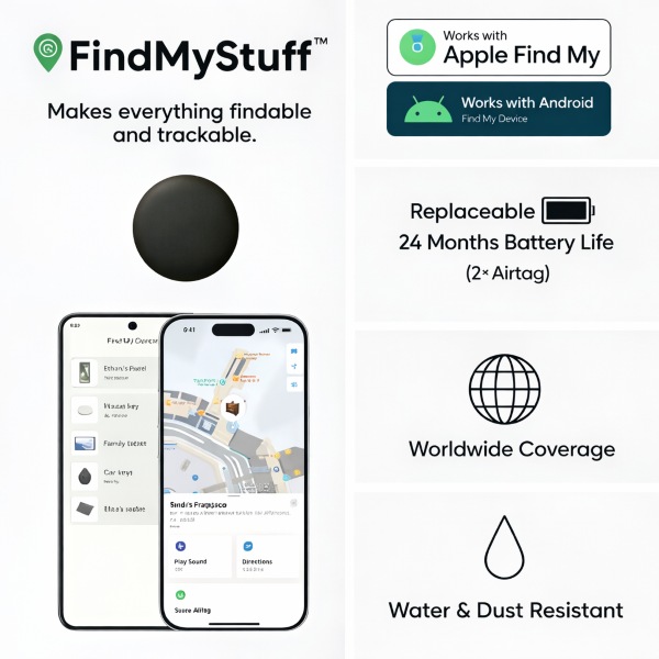 📱 Kompatibel mit Apple „Wo ist?“ & Android „Mein Gerät finden“