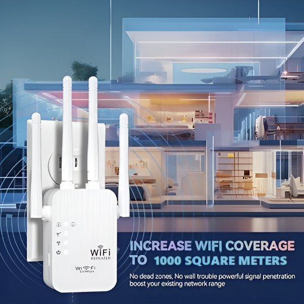 Mit 4 leistungsstarken Antennen beseitigt der WIFINA-WLAN-Verstärker Funklöcher und sorgt für eine starke und stabile WLAN-Abdeckung in Ihrem Zuhause oder Büro – bis zu 1000 Quadratmeter.