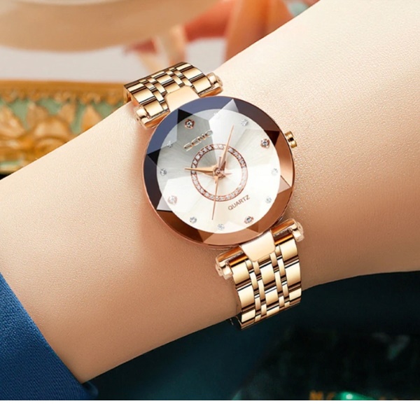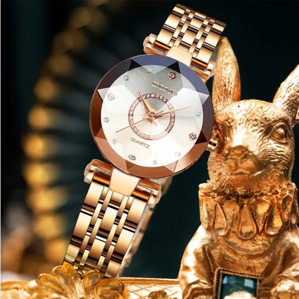 Präzises Quarzwerk: Die SPARKLELIGHT wird von einem elektronischen Antrieb und einem Quarzwerk angetrieben, das nicht nur für eine präzise Zeitmessung sorgt, sondern auch für eine elegante Synchronisierung von Stil und Funktion. Jeder Blick auf dein Handgelenk wird zu einem Moment des raffinierten Luxus.
