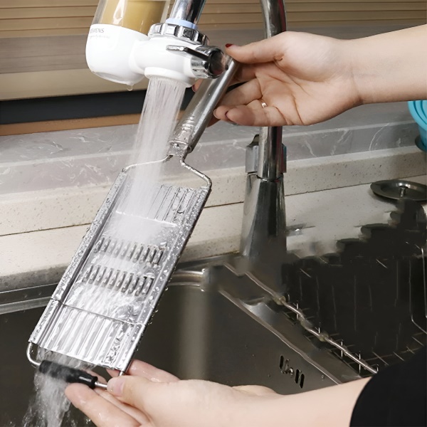 Die Reinigung ist ganz einfach: Entfernen Sie einfach die Klingen und spülen Sie sie unter fließendem Wasser ab. Verwenden Sie eine Bürste, um Lebensmittelreste zu entfernen, damit das Ergebnis jedes Mal makellos ist.