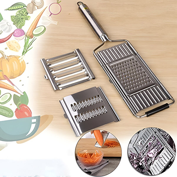 Das Set enthält: 1 SLICEIEST Küchenreibe, 3 Extraklingen