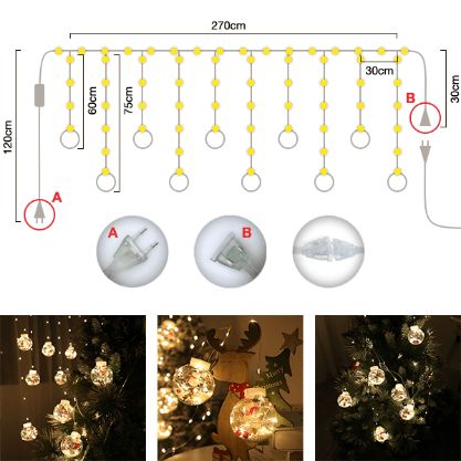 Die Dekoration mit leuchtenden Kugeln hat die Form eines Vorhangs. Wenn Sie sie aufhängen, schaffen Sie ein echtes Weihnachtsmärchen
