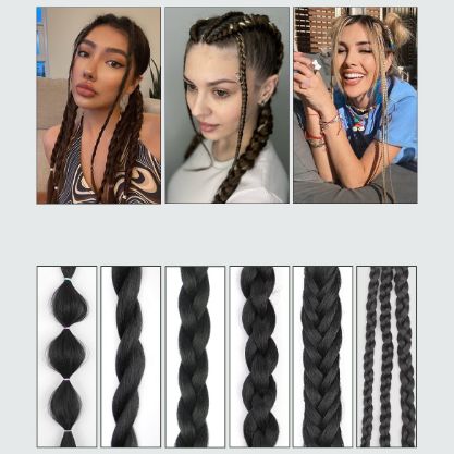 BRAIDELLA-Haarverlängerungen werden aus hochwertigen, hitzebeständigen Synthetikfasern hergestellt und fügen sich nahtlos in Ihr natürliches Haar ein – für ein makelloses Aussehen, das von Ihrem eigenen Haar nicht zu unterscheiden ist.