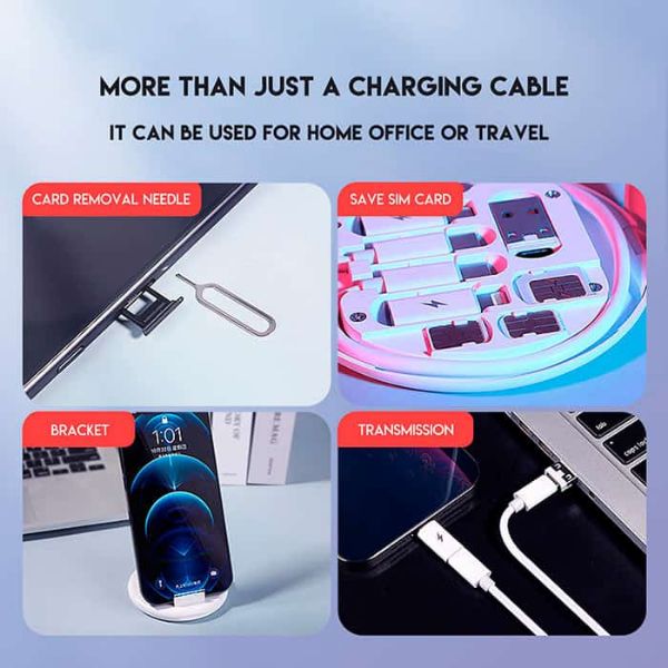 Dieses Kit wurde für Android-, iPhone- und andere Smart-Geräte entwickelt und gewährleistet nahtloses Aufladen für verschiedene Marken und Modelle. Egal, ob Sie ein Handy, ein Tablet oder Zubehör aufladen, Sie haben immer den richtigen Anschluss.