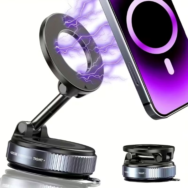 Die MAGHOLDZ-Handyhalterung verwendet einen leistungsstarken Vakuumgriff, der sich bei Vibrationen verstärkt und Ihr Handy sicher auf glatten Oberflächen hält, ohne Spuren auf Glas, Armaturenbrettern oder Schreibtischen zu hinterlassen.