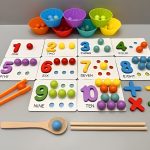 Bunte Perlen, verschiedene Strukturen und Werkzeuge fördern Sehen und Tasten, um das frühe Mathematikverständnis zu vertiefen.