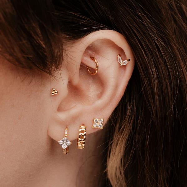 Das Kalisto-Piercing hat alles in einem. Die drei miteinander verbundenen Kugeln spiegeln Stärke, Festigkeit und Gleichgewicht wider. Durch sein unaufdringliches Design lässt er sich auch perfekt mit anderen Ohrringen kombinieren. Der Ohrring ist als Einzelstück erhältlich und lässt sich mit allen anderen Ohrringen kombinieren.