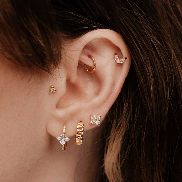 Das Melani-Piercing hat einen diskreten Look, ist aber gleichzeitig unverzichtbar in allen Kombinationen, denen Sie ein Funkeln hinzufügen möchten. Seine zwei Kristalle glänzen im Sonnenlicht und erhellen Ihre geschäftigen Tage. Der Ohrring ist als Einzelstück erhältlich und lässt sich mit allen anderen Ohrringen kombinieren.