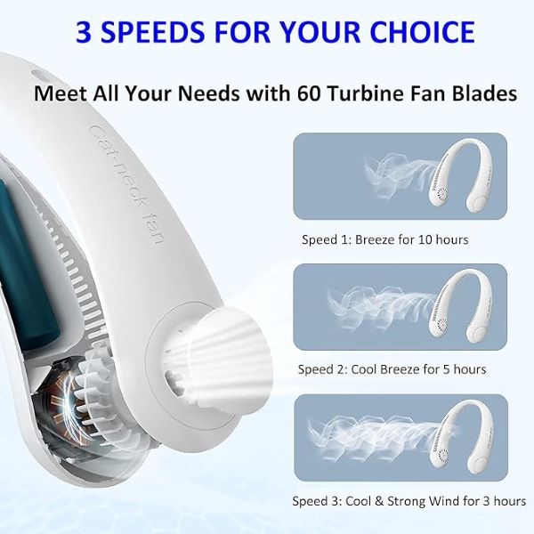 Der Nackenventilator, der sich durch seine einzigartige Luftdurchlassform auszeichnet, ist eine neue Kühlungslösung, die Ihre Hände frei lässt. Setzen Sie ihn um den Hals und genießen Sie den kühlen Wind ohne Sorgen. Er ist sicher für Kinder und Senioren und eignet sich hervorragend, um während der heißen Sommermonate bei der Arbeit Komfort zu bewahren.