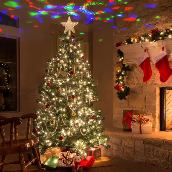 Schafft eine magische Atmosphäre mit animierten 3D-Projektionen, die über Ihrem Baum tanzen.