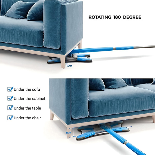 Sie müssen sich nicht den Rücken verrenken, indem Sie schwere Möbel bewegen, um den Boden zu reinigen. Der MOPEX-Mopp verfügt über einen um 360 Grad drehbaren Kopf, mit dem Sie mühelos um Möbelbeine, unter Sofas und entlang von Fußleisten reinigen können. Er ist ideal für Wohnungen mit engen Räumen oder schweren Möbeln.