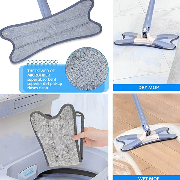 Der einzigartige X-förmige Moppkopf ist so konzipiert, dass er auch Ecken und Kanten erreicht, wo herkömmliche Mopps nicht hinkommen. Perfekt für Küchen, Bäder und Eingangsbereiche, in denen sich häufig Schmutz ansammelt.